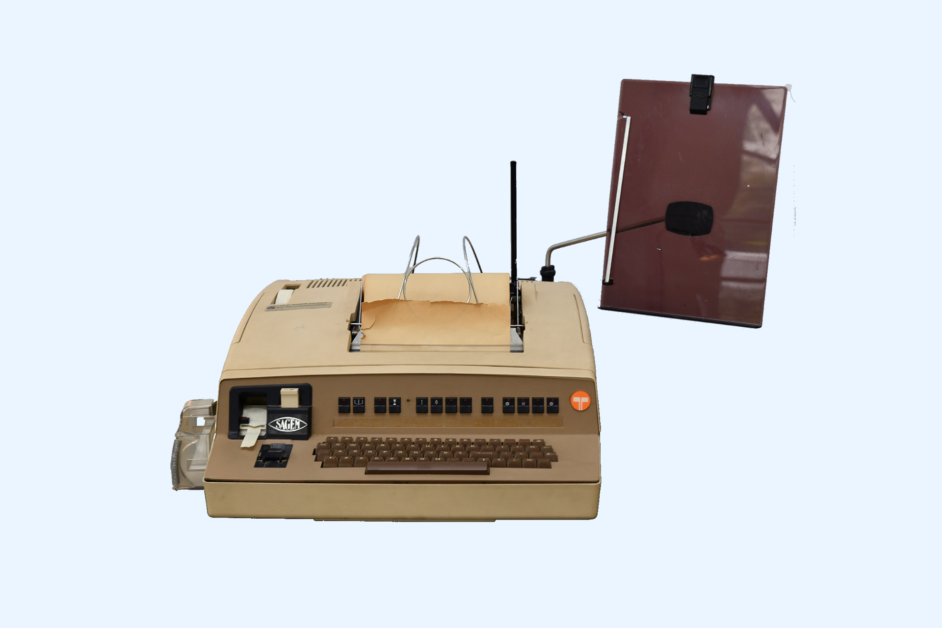 The vintage telex machine represents the first-ever global disease-tracking service, established in 1947.